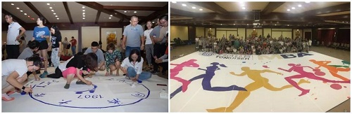 由于“安比”的肆虐,本次拓展课程不得不将第二天的共绘蓝图活动临时调整至第一天晚上。于是,经历了一整天拓展课程,略带倦容的学员们在晚上8点钟依旧根据任务迅速合理地分工,各司其职,舞动画笔,挥洒颜料,终于在3个小时的共同努力后,巨画完工,大家一起绘出了同济经管MBA2018新生的最美蓝图!
