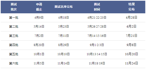 ①网上申请;②背景评估;③提前批面试;④全国联考;⑤正常批面试。