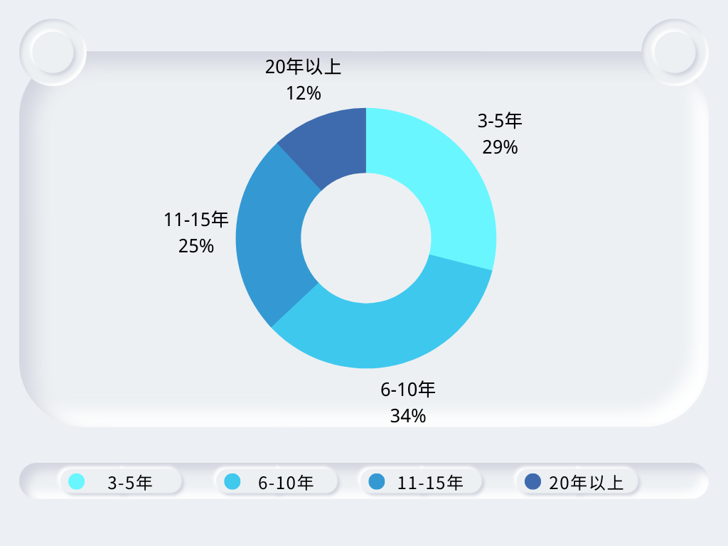 2023级新生的平均工作年限为9年。工作年限在6-10年的同学占比最高为34%。值得一提的是,有近10%的同学的工作年限超过15年(其中11位超过20年)。