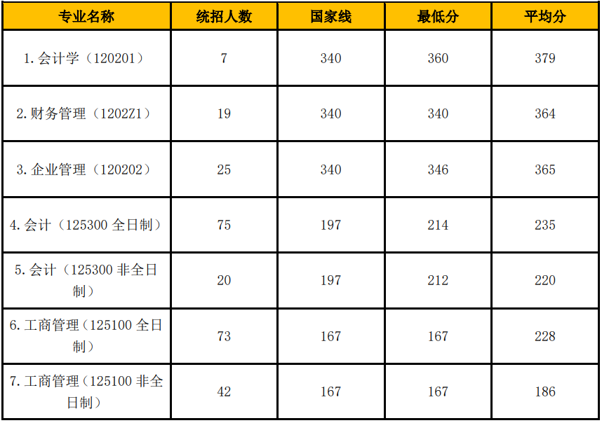 2023 年商学院各学科拟录取情况如下表。我院招生人数为 331 人,其中学硕会计学 43 人、 财务管理 22 人 、企业管理 42 人; 专硕会计 (全日制 75 人 、会计 (非全日制) 20 人 、工商管理 (全日制) 73 人 、工商管理 (非全日制) 42 人;会计学博士研究生 5 人;企业管理博士研究 生 5 人;财务管理博士研究生 4 人。